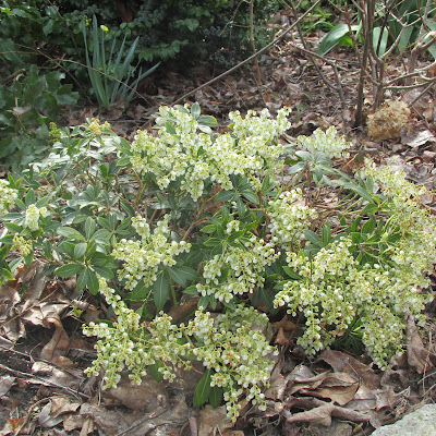 Zakwitła nasza ulubiona śliwka, podobno ciemna mirabelka. Jestem pełna obaw, bo jest bardzo zimno, przymrozki, a to nie wróży dobrze dla owoców. Ich smak i przetworów z ich udziałem jest niepowtarzalny, | Pieris japoński "Debutante" |